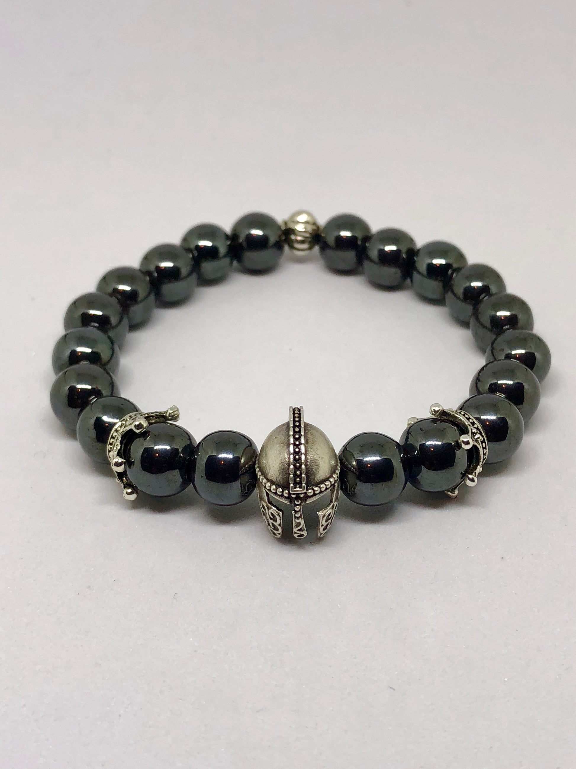 10mm Hematite Stones accented with Metal Crowns and a Metal Helmet