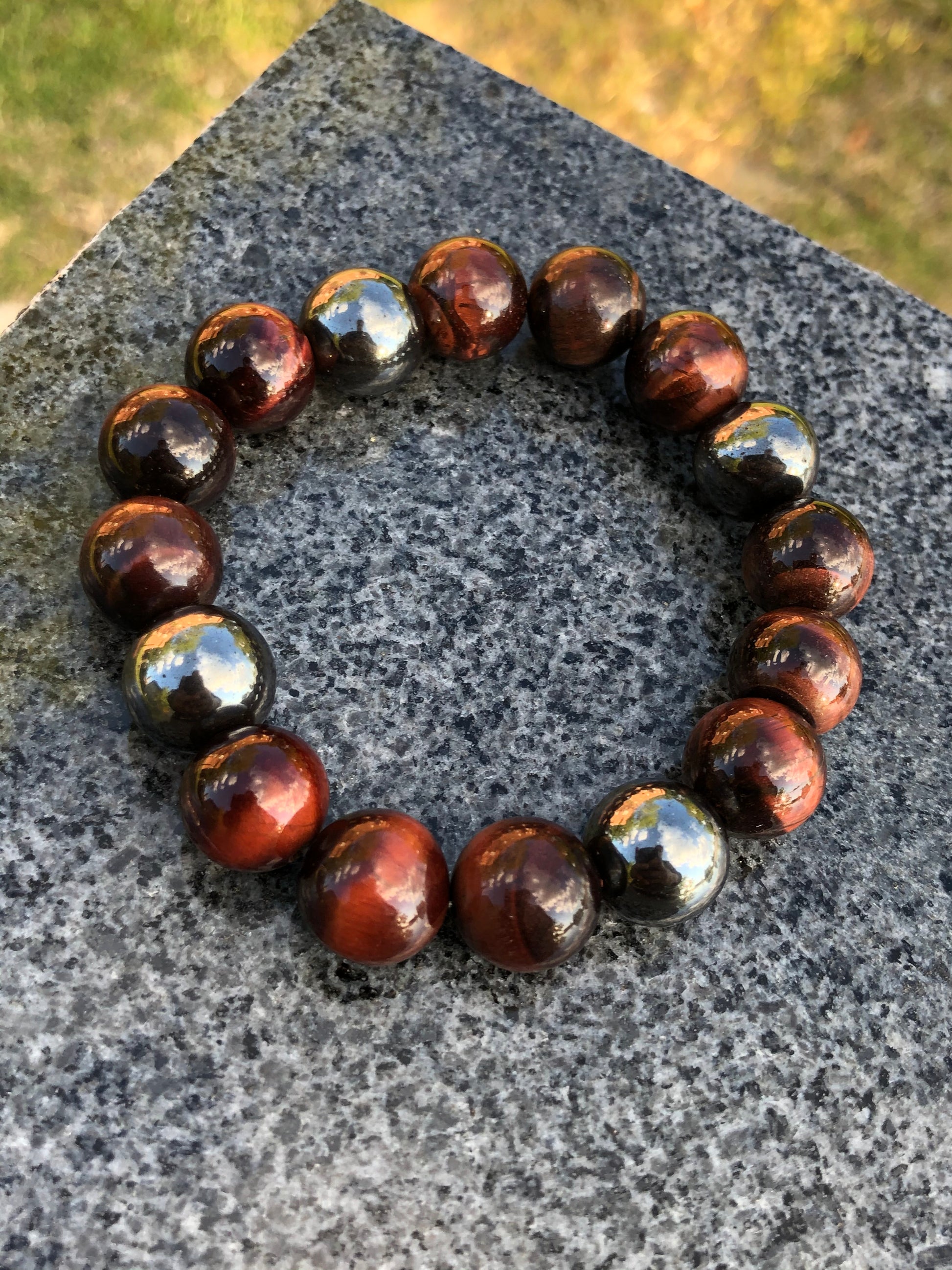 14mm Red Tiger Eye Stones accented with Hematite Stones