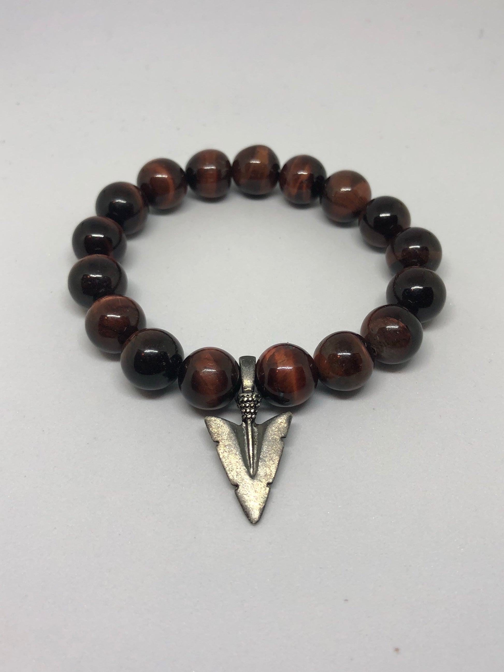 12mm Red Tiger Eye Stones accented with a Metal Arrowhead